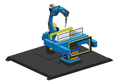 三軸水平旋轉變位機工作站結構組成:焊接機器人、三軸變位機、工裝夾具等;