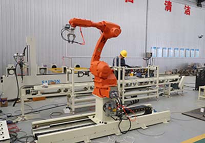 結(jié)構(gòu)組成:機(jī)器人本體、機(jī)器人控制柜、焊接電源系統(tǒng)、焊接傳感器及系統(tǒng)安全保護(hù)設(shè)施、焊接工裝工具