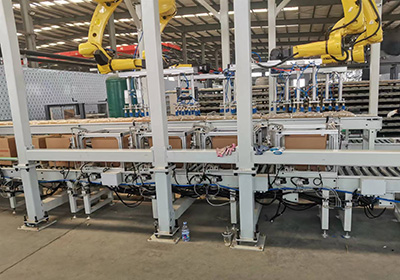 立柱式碼垛機器人搭配行走導軌,延長碼垛的工作距離,碼垛手臂采用磁吸或者抓手結構,根據不同規格的工件定制碼垛抓手,電氣控制柜設定好程序,立柱式碼垛機器人根據程序行走移動,自動化和智能化水平較高。