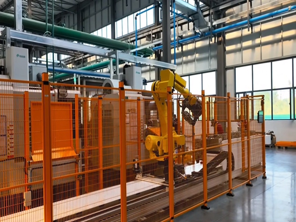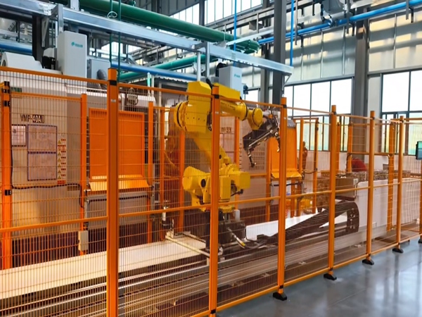 防護(hù)欄的翻板機(jī)構(gòu)可隔離人與機(jī)器人空間,保證人員刀補(bǔ)或脫機(jī)工作時(shí)安全